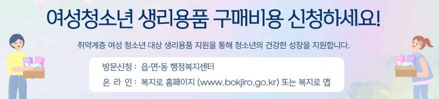 경제적인 이유로 생리용품 구매가 부담된다면, 망설이지 말고 꼭 신청하세요.